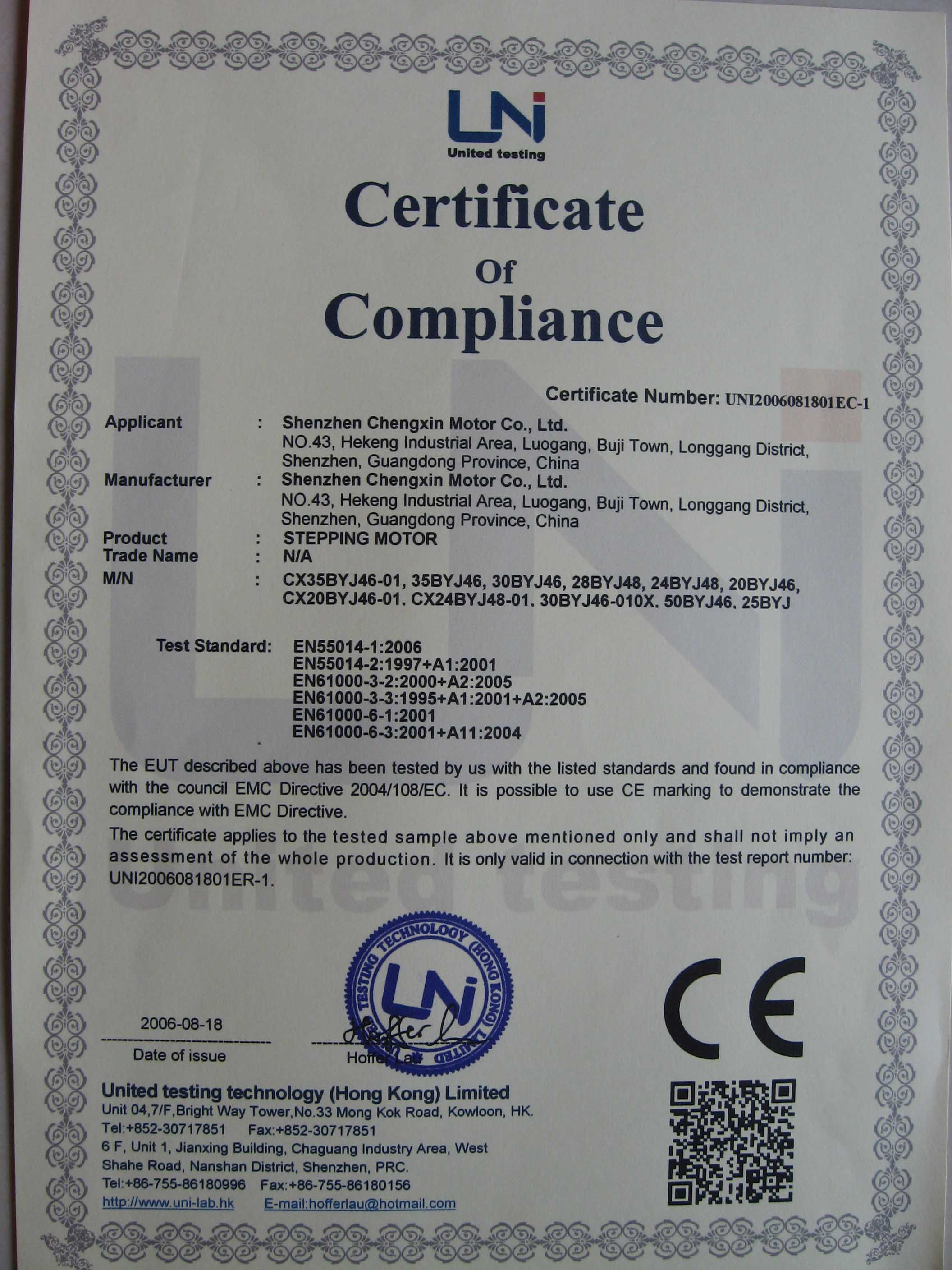 我司產(chǎn)品通過CE認證
