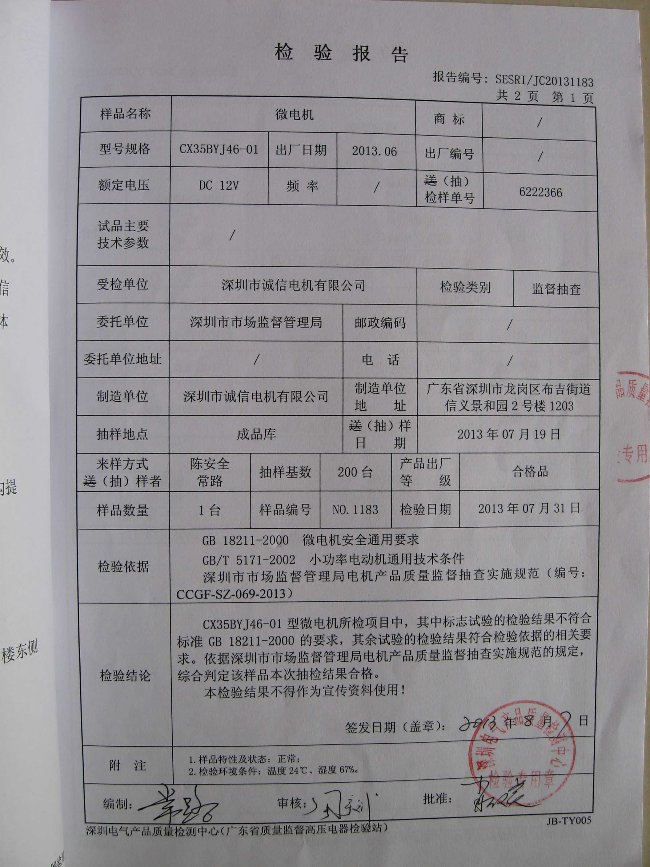 我司產(chǎn)品連續(xù)2年被深圳市質量技術監(jiān)督局抽檢合格